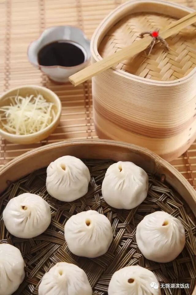 无锡的小笼包以皮薄卤多、口味鲜甜而誉遍沪、宁、杭一带,湖滨大厨选用上等面粉制作,选料精细,烹制出的小笼包夹起不破皮,翻身不漏底,一吮满口卤,味鲜不油腻。